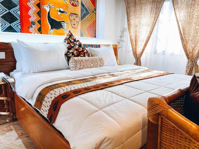 We'll break up our drive to Accra with a stop at the Nkyinkyim Museum, an outdoor museum telling the story of African cultural heritage and Africa's journey of liberation, and exhibits installations of beautiful and inspiring art pieces. Drive 6 hours Overnight: Mahogany Lodge, Accra