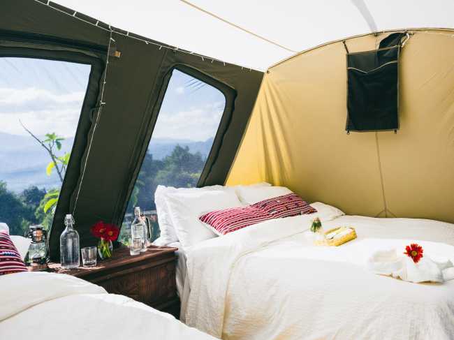 • 3 nights luxury canvas tent with queen beds