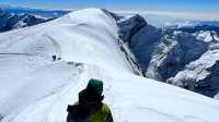 An alpine start sees us climbing steeply up the lower flanks of the south-east face. The track is well used as this is a popular peak. At times there is a bit of rock scrambling and the rocky spur takes us to a snow ramp that leads to the upper snow fields. The peaks of Makalu and Lhotse come into view as we climb higher. Upon crossing the upper neve, it is necessary to fix ropes up a short but steep ice face that leads on to the summit ridge. The summit ridge is a classic alpine ridge and quite exposed, (our climbing Sherpa will fix ropes here if required) and traverse our way to the summit. Although Island Peak appears dwarfed by the seven and eight thousanders surrounding it, it provides a magnificent vantage point to all the peaks south of the stupendous Lhotse face. After some exhilarating moments on the summit we descend by the same route to our base.